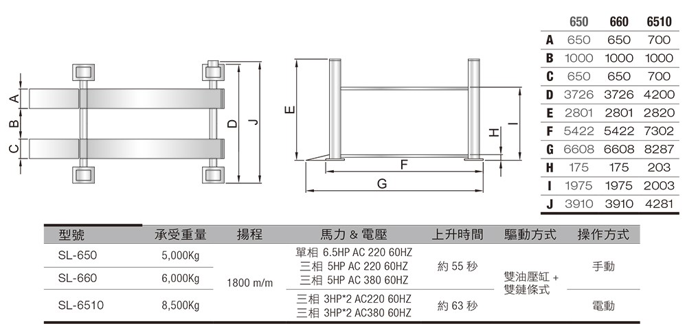 SL-650/SL-660/SL-6510 四柱頂車機