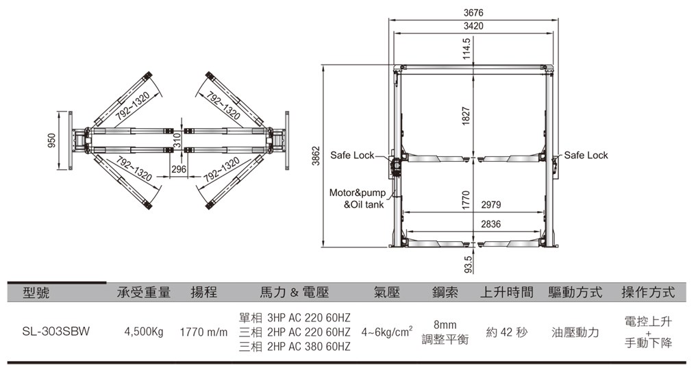 SL-303SBW 門型雙柱頂車機(雙油壓缸)