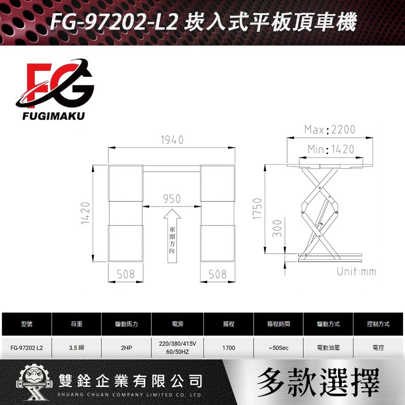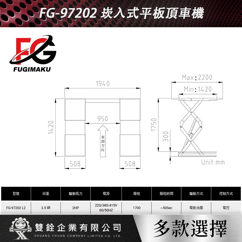FG-97202/FG-97202-L2/FG-97202-ST 崁入式平板頂車機