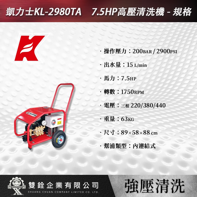 凱力士KL-2980TA 7.5HP高壓清洗機